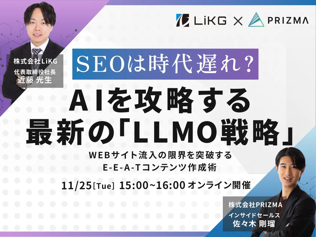 2023年11月25日、AIを活用した最新の情報戦略「LLMO戦略」に関するセミナーがオンラインで開催されます。このセミナーでは、現在のデジタルマーケティングにおいて求められる新たなアプローチについて学ぶ貴重なチャンスです。