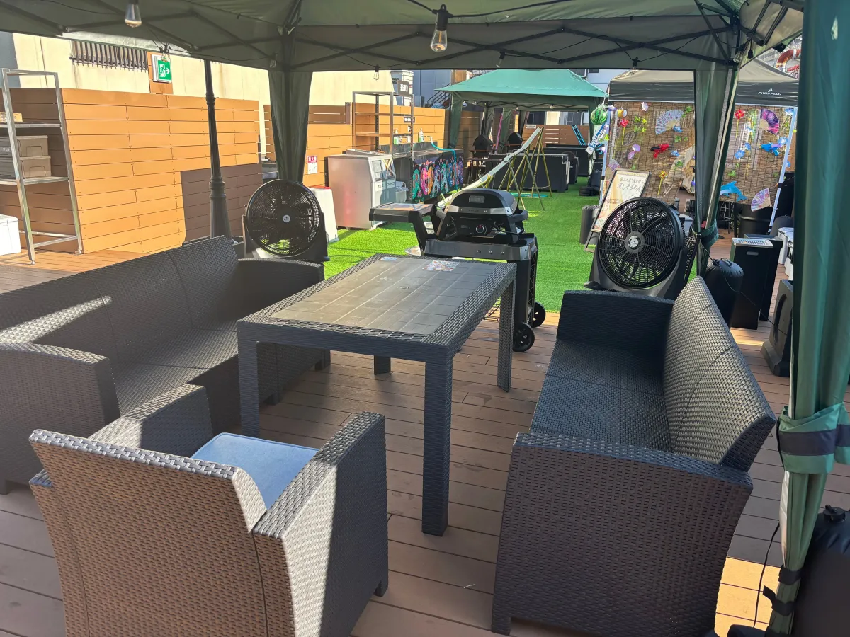 この「ジャンオク」は、ジャンカラの屋上を活用した新しいエンターテインメント空間。開放感あふれる屋上で、本格BBQを楽しみながらカラオケや大型ビジョンの演出を楽しむことができ、昼夜を問わず多くのお客様から注目を集めています。2023年9月に京都の出町柳で誕生したこのプロジェクトは、今回は心斎橋店で5店舗目の展開となります。