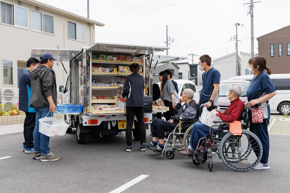 ハイジが運営するサービス付き高齢者向け住宅「こもれび」では、月に1回、移動販売車が施設の前にやってきます。このシステムは、入居者が商品を選び、販売員や近隣住民と会話を楽しむことができる仕掛けです。これにより、入居者は買い物という活動を通じて、認知機能の維持を図ると同時に、地域社会とのつながりを実感できます。単なる食材調達の手段としてだけでなく、自己選択の喜びや社交の楽しさを提供します。