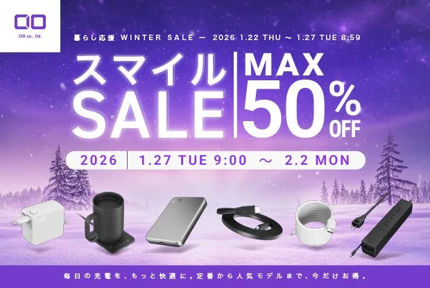 さらに、充電器では「NovaPort DUO II 45W2C Built in CORD REEL」がおすすめです。約65cmのUSB-Cケーブルを内蔵し、最大45Wのパワーを誇ります。ボタンを押すだけでケーブルが飛び出し、使わない時はスッキリと収納ができる便利さが魅力です。定価4,800円が11%OFFの4,280円(税込)で購入可能です。