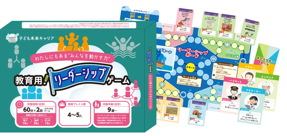 『リーダーシップゲーム』は、学習塾や学校、学童施設など全国の教育現場で使用される予定です。教材の対象年齢は9歳からで、プレイ時間は約60分が2回。4~5人のグループで学び合うことで、より実践的な理解が促進されます。