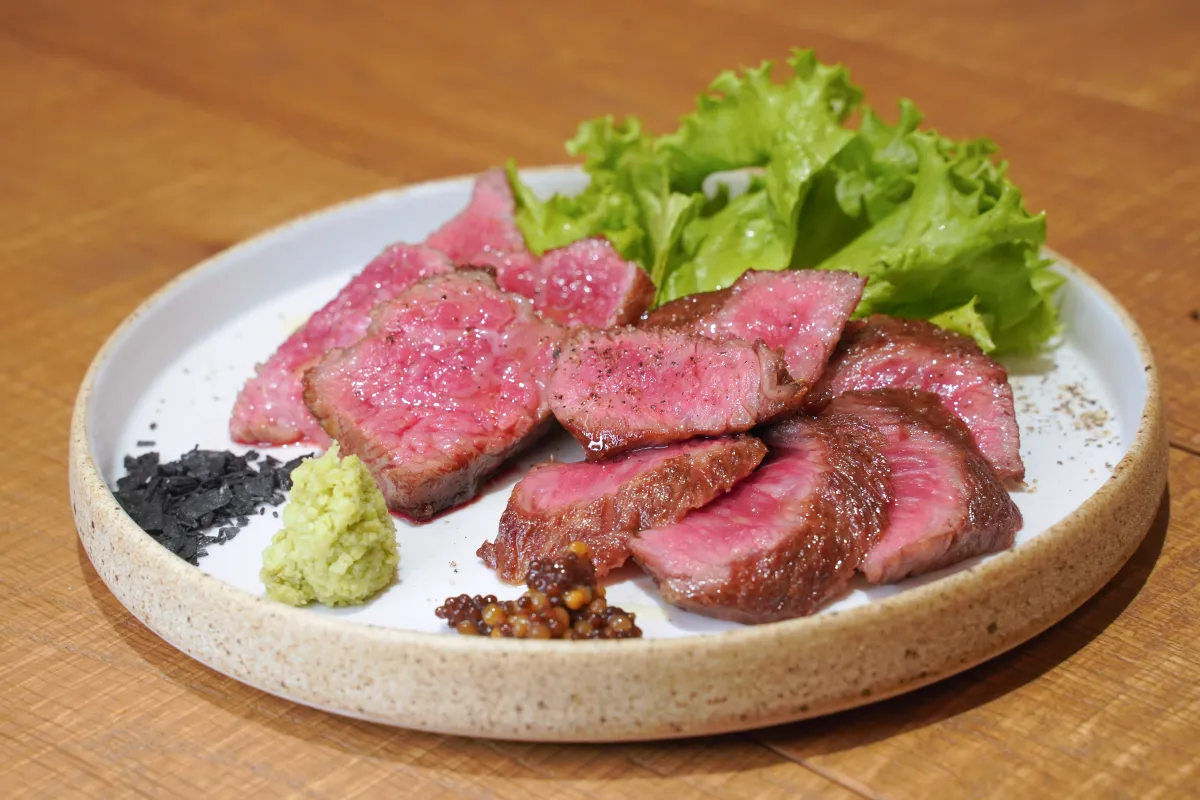このバルの最大の特徴が“備前黒牛”。岡山県の岸本牧場から1頭買いし、26ヶ月以上の長期肥育を経たこの牛肉は、一般的な肉牛よりも格段に柔らかい食感と豊かな旨味を誇ります。プロのグリル技術により、シンプルに仕上げられた小皿料理として提供されるため、その本来の美味しさをダイレクトに味わうことができます。特に、「備前黒牛の2種盛り合わせ」(1,300円)は必食の一品です。