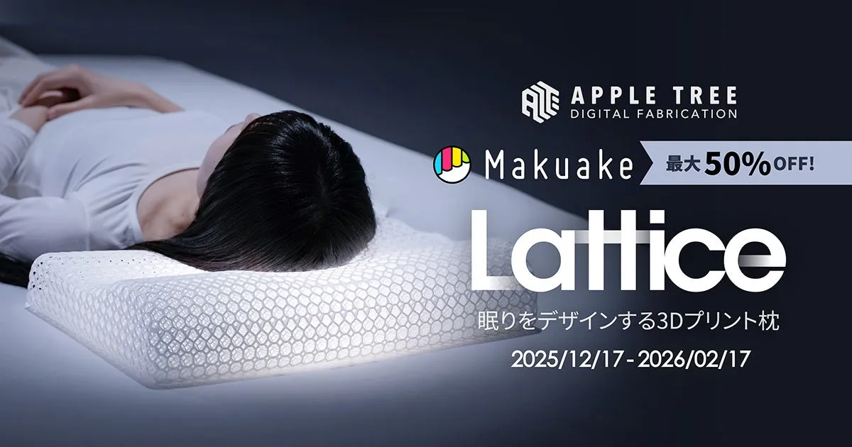APPLE TREE株式会社が新たに投入する3Dプリント枕『Lattice(ラティス)』が、2025年12月17日にクラウドファンディングサイト「Makuake」で支援受付を開始します。この枕は、最新の光硬化方式3Dプリント技術と環境に優しいバイオベース素材を使用しており、快適な睡眠のために設計されています。