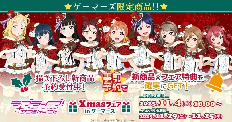 2025年11月29日(土)から12月25日(木)まで、アニメファン待望の「ラブライブ!サンシャイン!!」Xmasフェアがゲーマーズで実施されます。このイベントは、全国のゲーマーズ各店とオンラインショップで開催され、さまざまな特典や新商品が用意されています。
