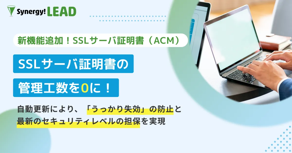 最近、シナジーマーケティング株式会社は、SalesforceのエンタープライズクラウドマーケットプレイスであるAppExchangeにて、マーケティングアプリケーションのSynergy!LEADの新たな機能を追加したことを発表しました。このアップデートにより、SSLサーバ証明書の更新作業が完全に自動化され、これまで手動で行っていた煩雑な作業から解放されることで、マーケター達の業務効率が大幅に向上することが期待されます。
