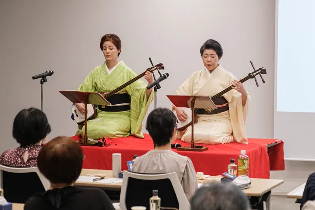 イベントでは、邦楽ユニット「明暮れ小唄」による生演奏が行われ、日本酒造組合中央会の館長今田周三氏が、日本酒の歴史や文化についての解説を交えながら進行しました。会場となった日本酒造組合中央会の会議室は、定員30名が満席となり、参加者たちは心待ちにしていたこの貴重な体験にわくわくしていました。