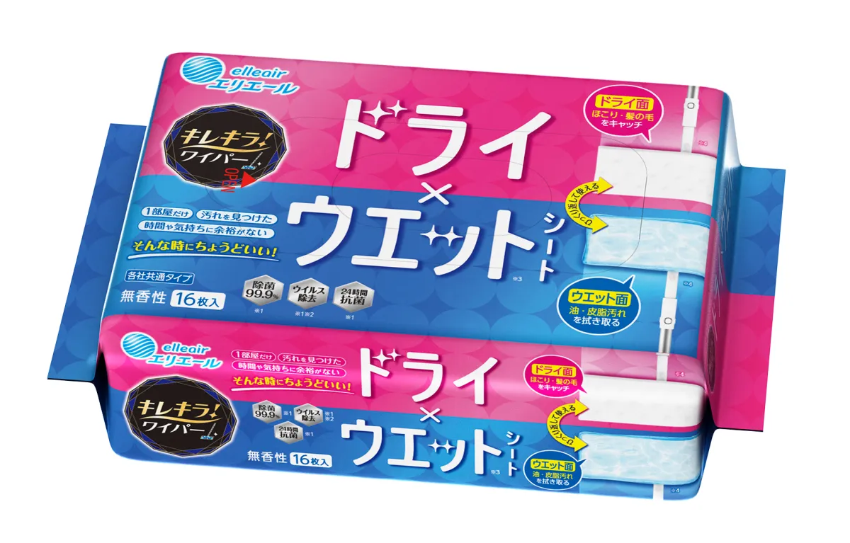 「キレキラ!ワイパー ドライ×ウエットシート」は、ドライ面とウエット面が一体化した革新的なアイテムです。これにより、掃除をする際にシートを裏返すだけで構造が変わり、使用する側の負担を大幅に軽減します。具体的には、ドライ面でホコリや髪の毛をしっかりキャッチした後、ウエット面でしつこい汚れを簡単に落とせる優れたデザイン。これ一枚でほこりや飲みこぼし、皮脂汚れを一度に処理することができるので、忙しい毎日でも“ちょこっと掃除”が可能になります。