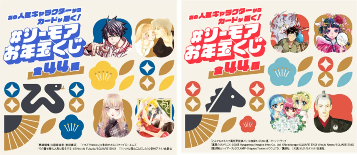 今年も待望の「#シーモアお年玉くじ」が12月27日(土)からスタートします。このキャンペーンは、国内最大級の電子書籍ストア「コミックシーモア」が提供するもの。公式Xアカウントをフォローして、特定の投稿をリポストすることで、人気キャラクターのカードが毎日ランダムに届くという仕組みです。特に注目は、44種類のキャラクターカードの中から、運が良ければサイン入りのレアカードも手に入ること。サイン入りカードは「コレットは死ぬことにした」の幸村アルト先生や、「鬼の花嫁」の富樫じゅん先生、クレハ先生の作品からも出てきます。