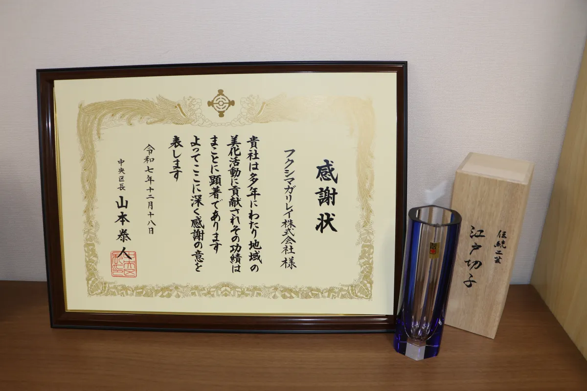 東京都中央区の評価を受けたフクシマガリレイ株式会社。大阪市西淀川区に本社を構える同社の東日本支社・日本橋事務所は、地域社会への貢献として行っている清掃活動が認められ、感謝状を贈呈されました。この栄誉は、同社が地域美化に向けた長年の努力を続けてきた結果として受け取られています。