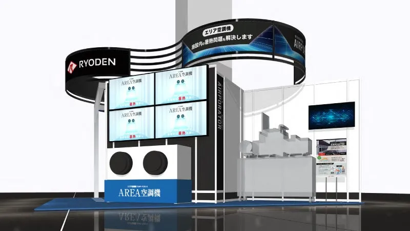 RYODENが出展する製品の中でも特に注目を集めるのが、非空調エリアに最適化された「エリア空調機」です。この機械は、特定の場所や人をピンポイントで冷やす性能を有し、自動車工場や作業場など、幅広いシーンで活躍することが期待されています。展示ブースでは、実際に「エリア空調機」のデモ機も設置され、観客は大風量の冷風を20メートル先まで体感できる機会が提供されます。これは、単にクールな空間を提供するだけでなく、実際にその効果を肌で感じられる貴重な体験となるでしょう。