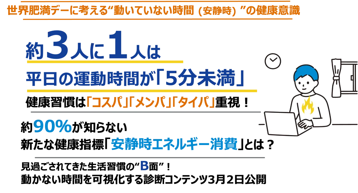 3月4日の「世界肥満デー」を前に、江崎グリコが行った調査では、働く世代の健康意識の現状が浮き彫りになりました。特に注目すべきは、動いていない時間(安静時)のエネルギー消費に関する知識がほとんどの人に欠けており、約90%が「安静時エネルギー消費」について知らないという結果が出たことです。
