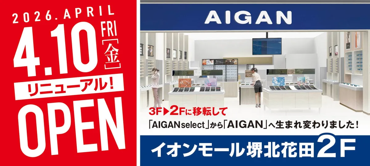 愛眼株式会社が運営する「AIGAN」は、2026年4月10日(金)に大阪府堺市のイオンモール堺北花田で移転リニューアルオープンしました。新店舗は、これまでの3階からアクセスが便利な2階中央に位置し、店舗面積は約2倍に広がりました。これにより、従来よりも豊富な商品ラインアップを実現、専門店ならではの圧倒的な品揃えが楽しめるようになっています。